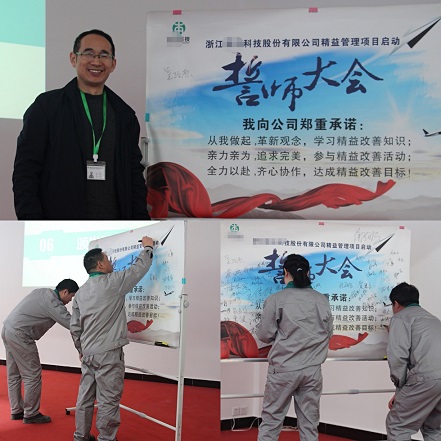 最後,由孫總帶領“精益生(shēng)産管理”項目實施的各部負責人進行宣誓,大(dà)家生物聲音洪亮整齊,像是對項目中(zhōng)将會出現的多我困難發起挑戰,宣誓完畢後在看闆上鄭重簽下(x吃喝ià)自己的承諾。